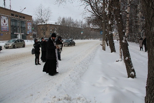 Отцом Андреем освящены места гибели детей (перекресток Октябрьский проспект – Катаева и ул. Станционная напротив д. 23).